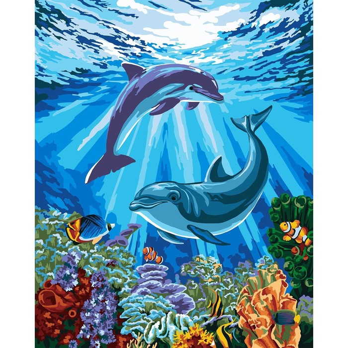 Картина по номерам на холсте с подрамником «Дельфины-друзья», 40 х 50 см понравится и детям, и взрослым.