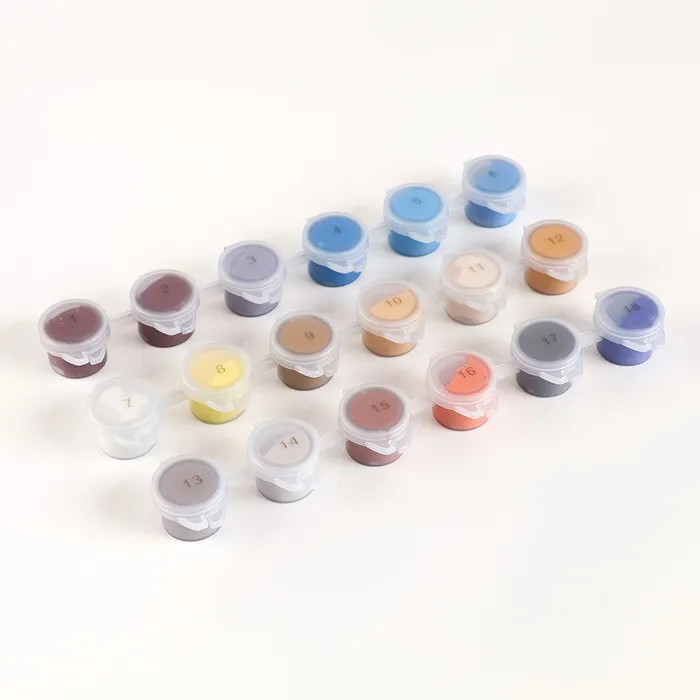 - В набор входят все необходимые оттенки красок. Баночки пронумерованы.