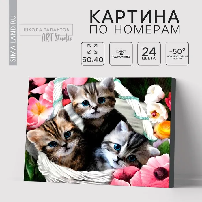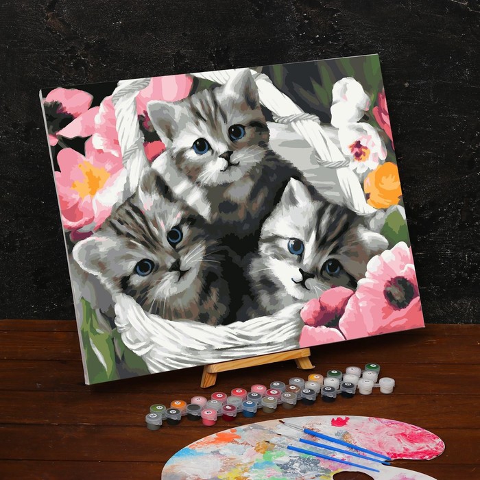 Картина по номерам на холсте с подрамником «Котята», 40 х 50 см понравится и детям, и взрослым.