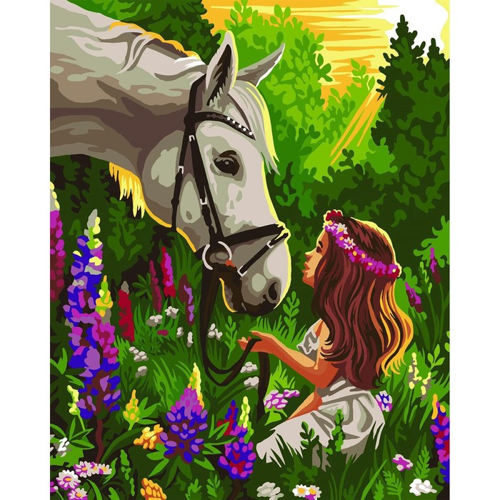 Картина по номерам на холсте с подрамником «Лошадка и девочка в поле», 40 х 50 см понравится и детям, и взрослым.