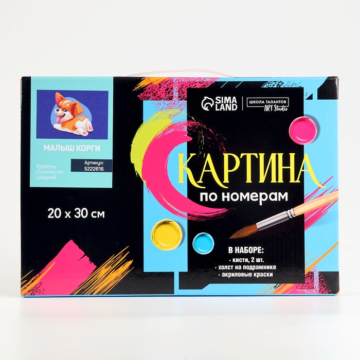 Картина по номерам на холсте с подрамником «Малыш Корги» 20х30 см понравится и детям, и взрослым.
