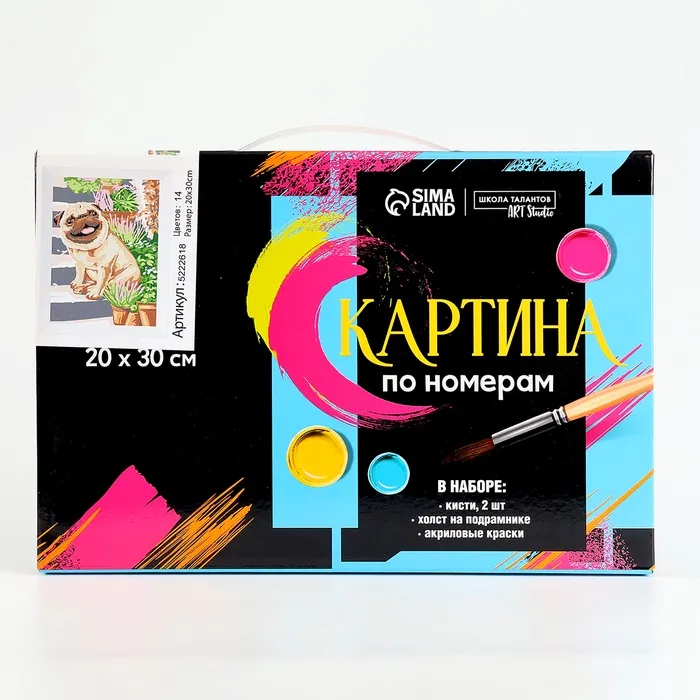 Картина по номерам на холсте с подрамником «Мопс» 20х30 см понравится и детям, и взрослым.