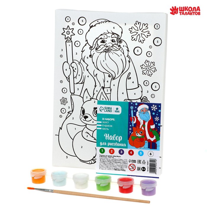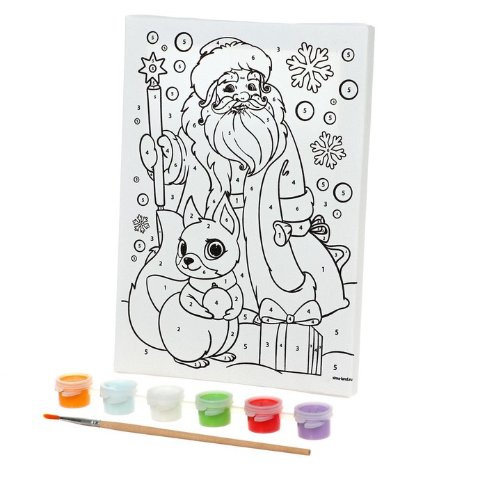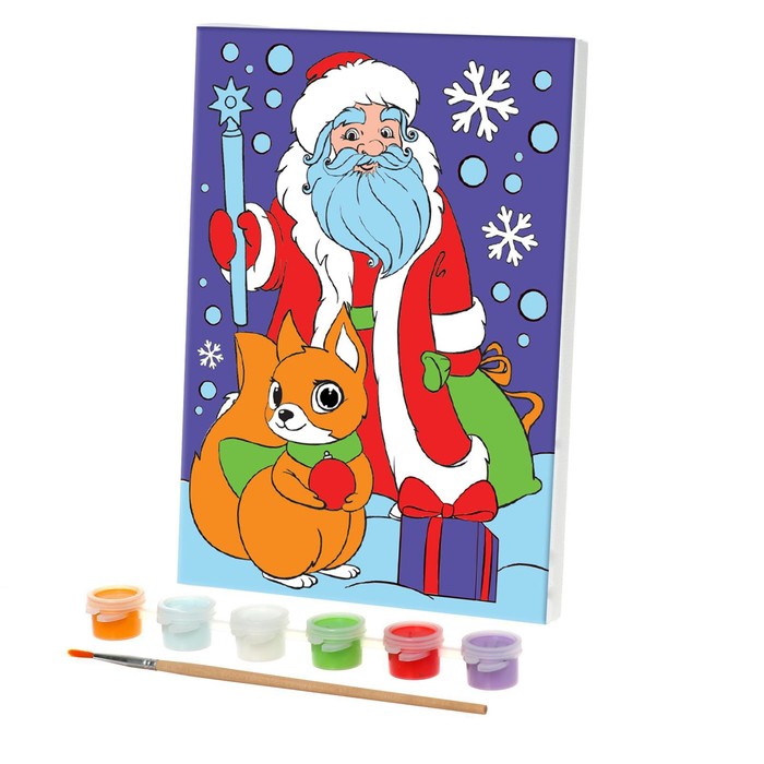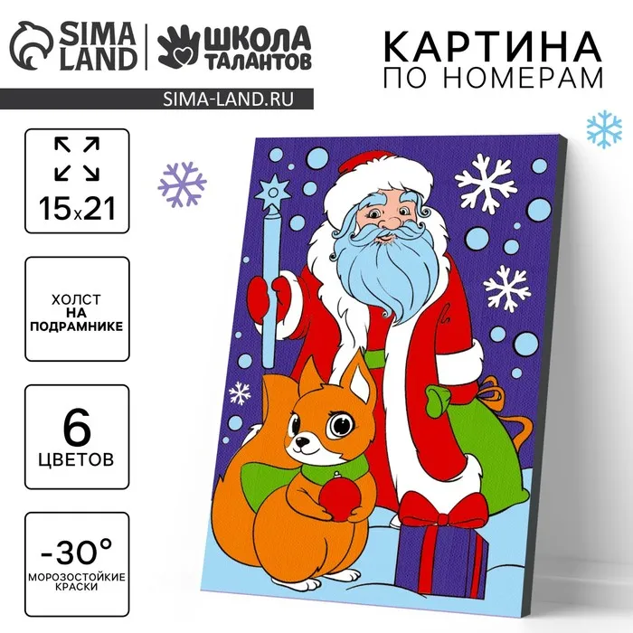 Картина по номерам на холсте с подрамником на новый год «Дед Мороз и бёлочка», 15 х 21 см понравится и детям и взрослым своим праздничным сюжетом.