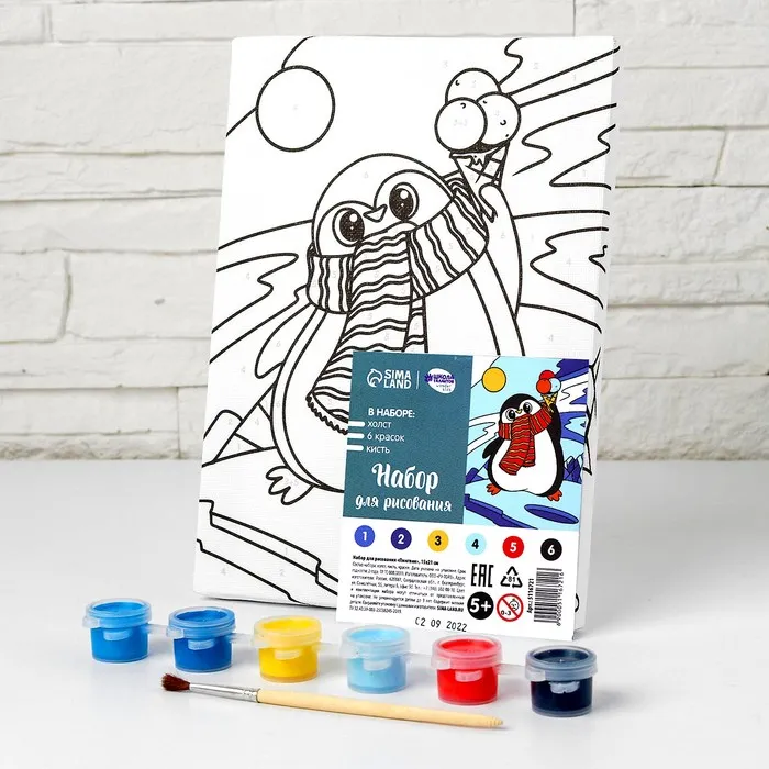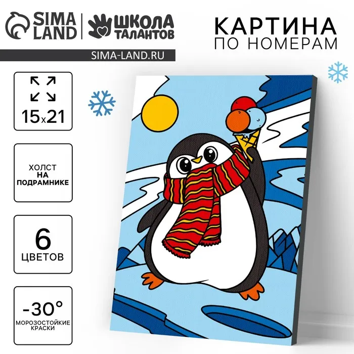 Картина по номерам на холсте с подрамником на новый год «Пингвин», 21 х 15 см — Характеристики