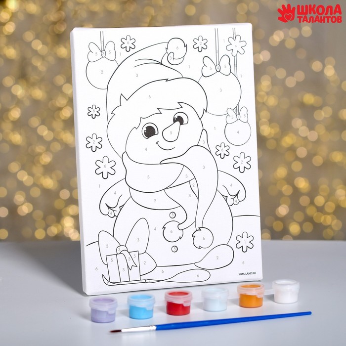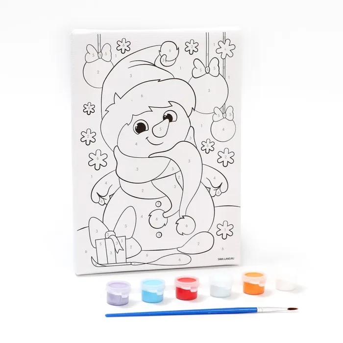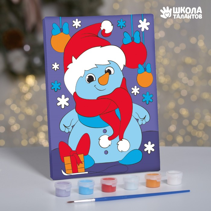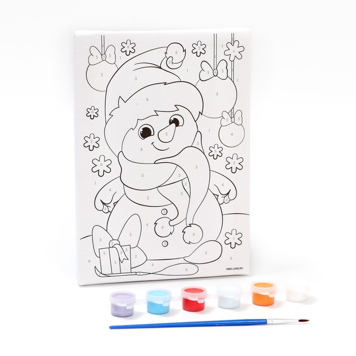 Картина по номерам на холсте с подрамником на новый год «Снеговичок с подарком», 15 х 21 см — Характеристики