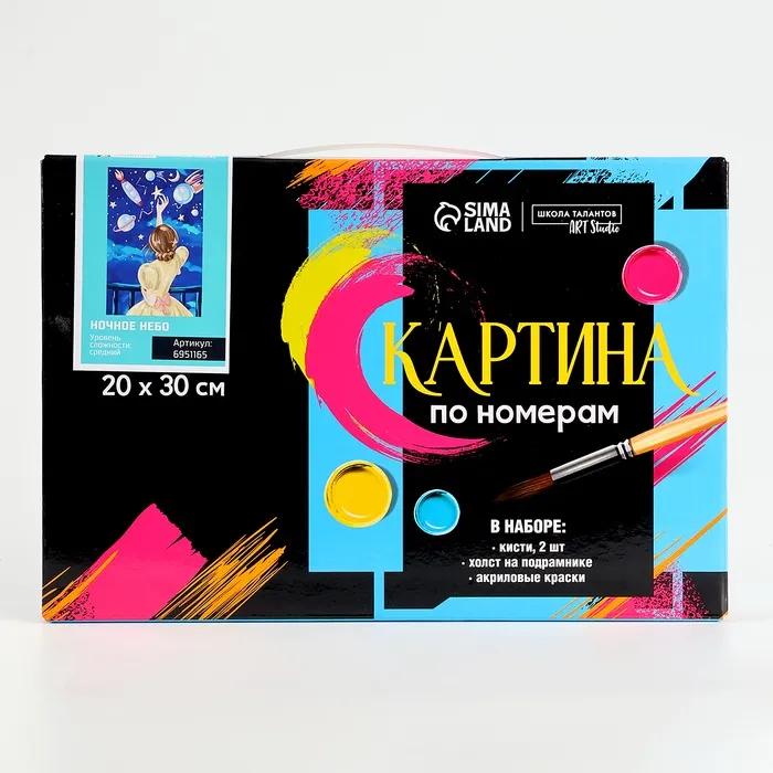 Картина по номерам на холсте с подрамником «Ночное небо» 20х30 см понравится и детям и взрослым.