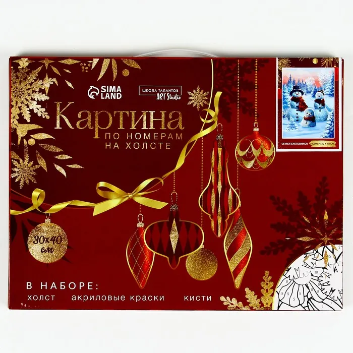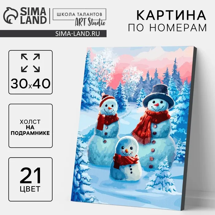 Картина по номерам на холсте с подрамником «Новый год! Семья снеговиков», 40×30 см — Характеристики