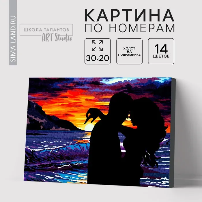 Картина по номерам на холсте с подрамником «Объятия на закате» понравится и детям, и взрослым.