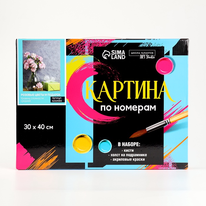 Картина по номерам на холсте с подрамником «Розовые цветы и подарок», 40х30 см понравится и детям, и взрослым.