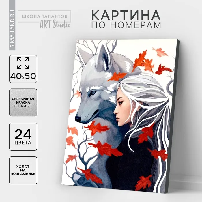 Картина по номерам на холсте с подрамником с серебряной краской «Девушка с волком», 40 х 50 см понравится и детям, и взрослым.