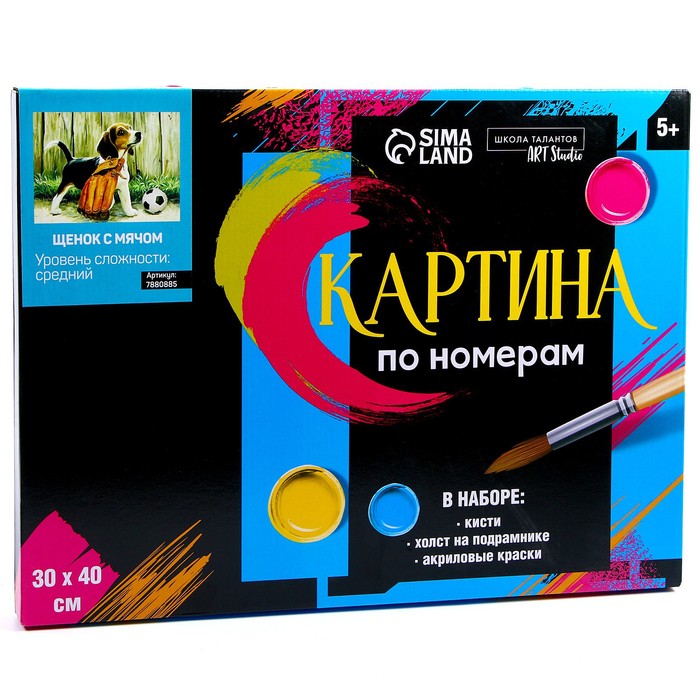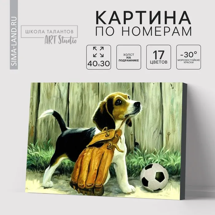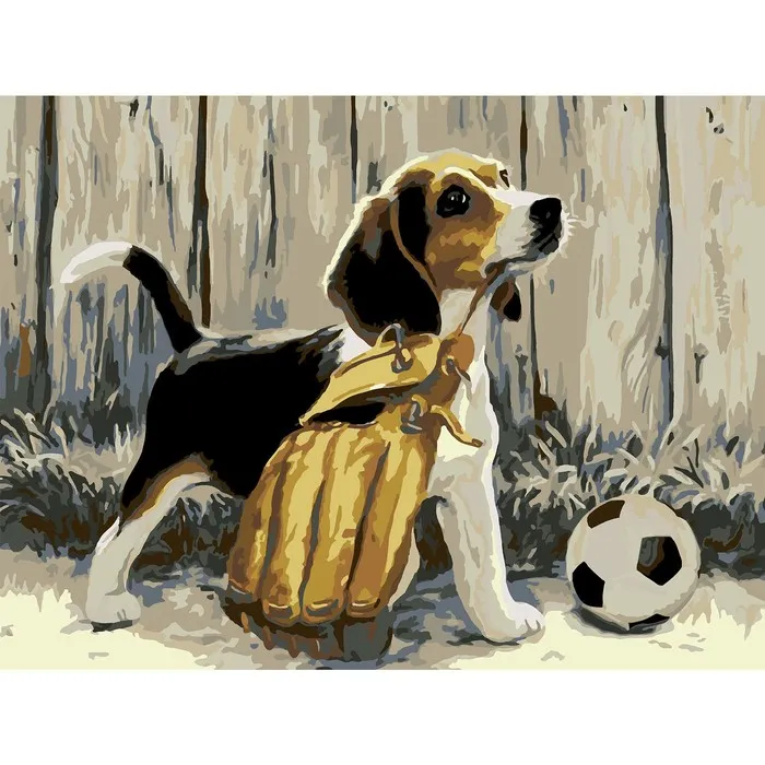 Картина по номерам на холсте с подрамником «Щенок с мячом», 40×30 см — Характеристики