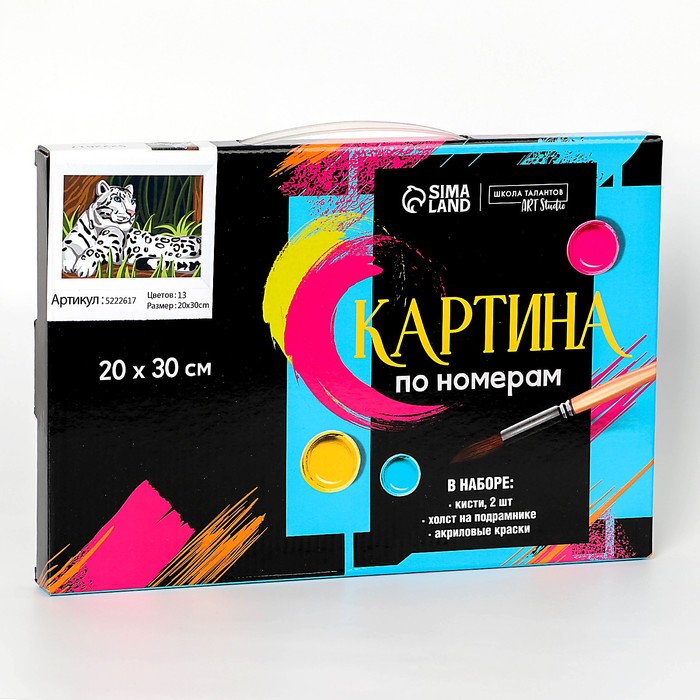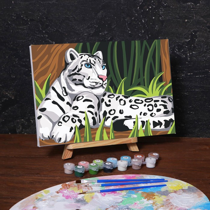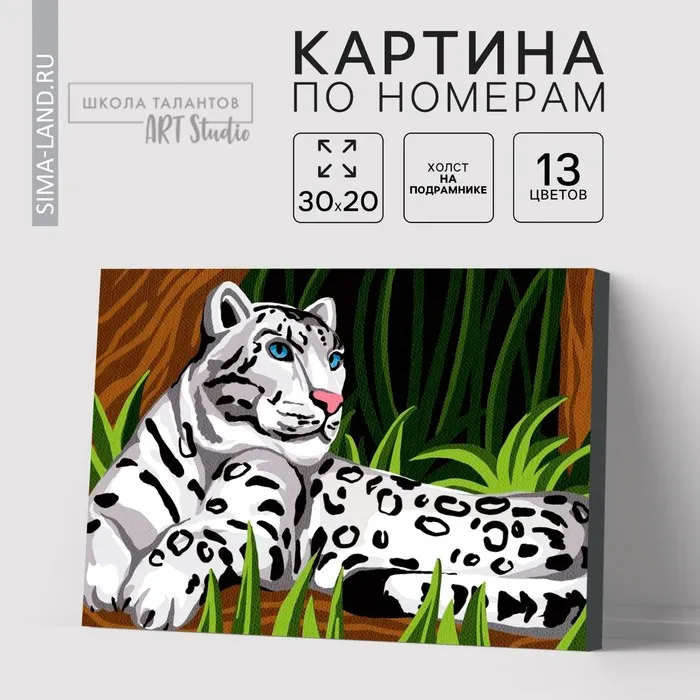 Картина по номерам на холсте с подрамником «Снежный барс» 20х30 см понравится и детям, и взрослым.