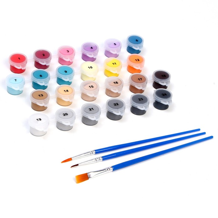 - В набор входят все необходимые оттенки красок. Баночки пронумерованы.