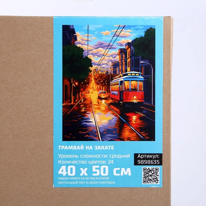 Картина по номерам на холсте с подрамником «Трамвай на закате» 40×50 см — Характеристики