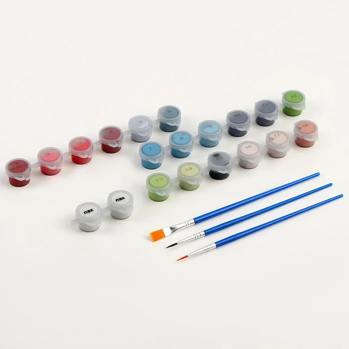 • В набор входят все необходимые оттенки красок. Баночки пронумерованы.