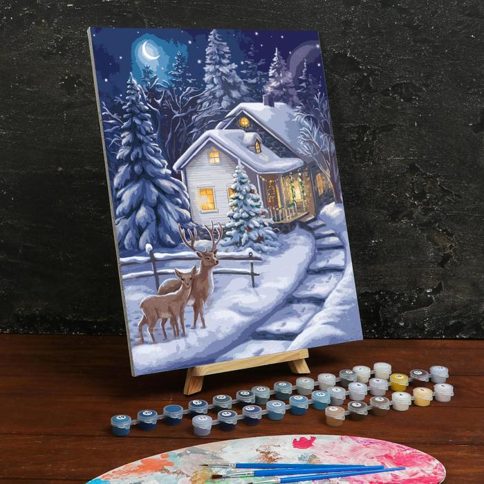 Картина по номерам на холсте с подрамником «Зимняя ночь» 30×40 см точно вам понравится!