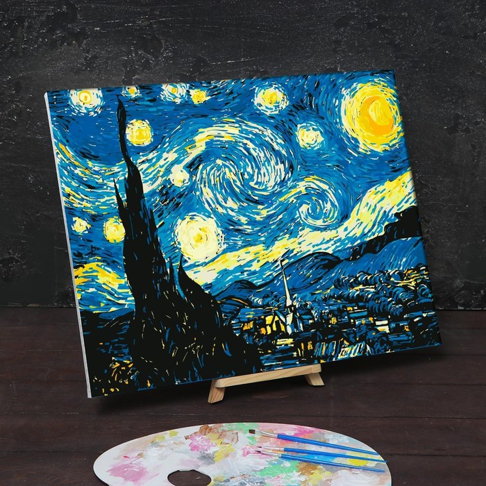 Картина по номерам на холсте с подрамником «Звёздная ночь» Винсент ван Гог, 40 х 50 см понравится и детям, и взрослым.