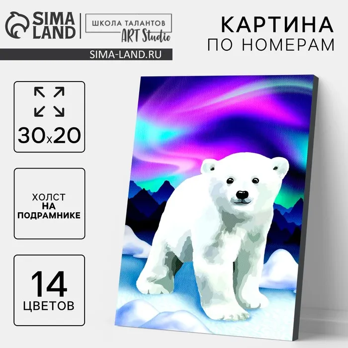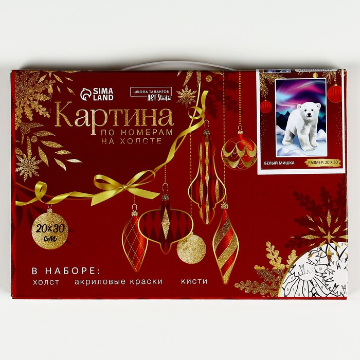 Картина по номерам на новый год на холсте с подрамником «Белый мишка», 20 х 30 см — Характеристики