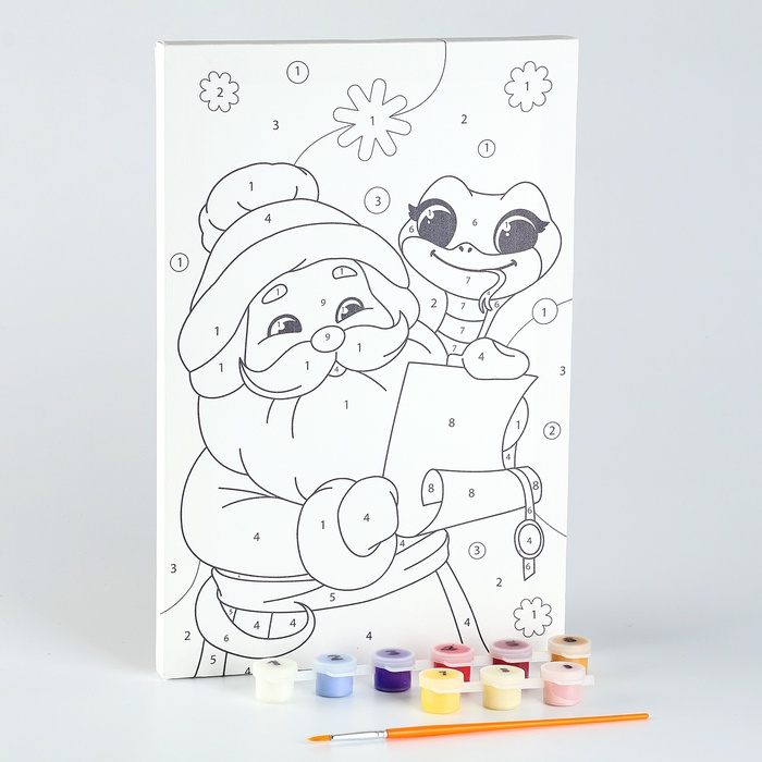 Картина по номерам на новый год на холсте с подрамником «Дедушка и змейка», 20×30 см — Характеристики