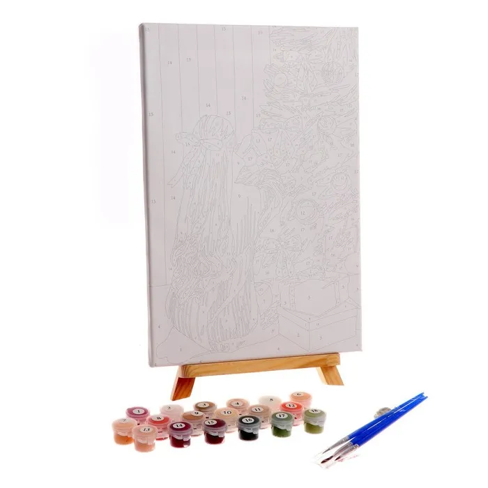 Картина по номерам на новый год на холсте с подрамником «Девушка у ёлки», 20 х 30 см — Характеристики