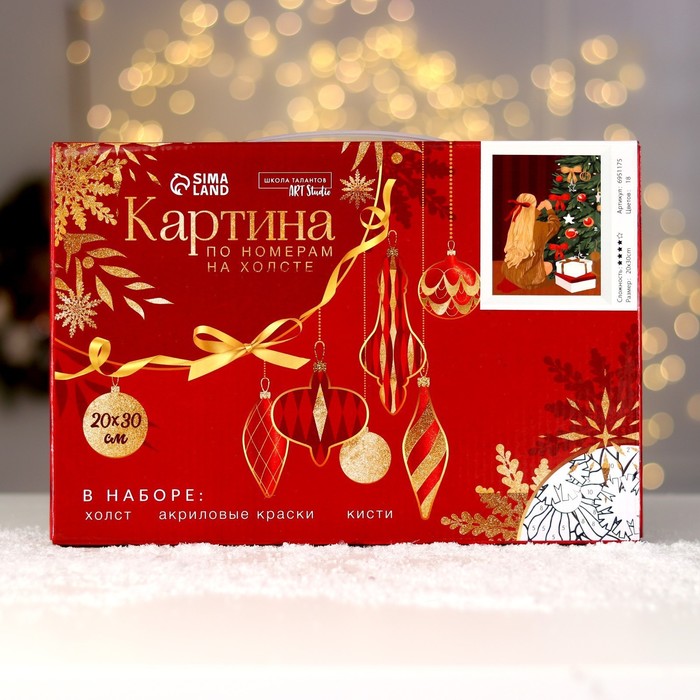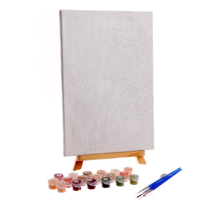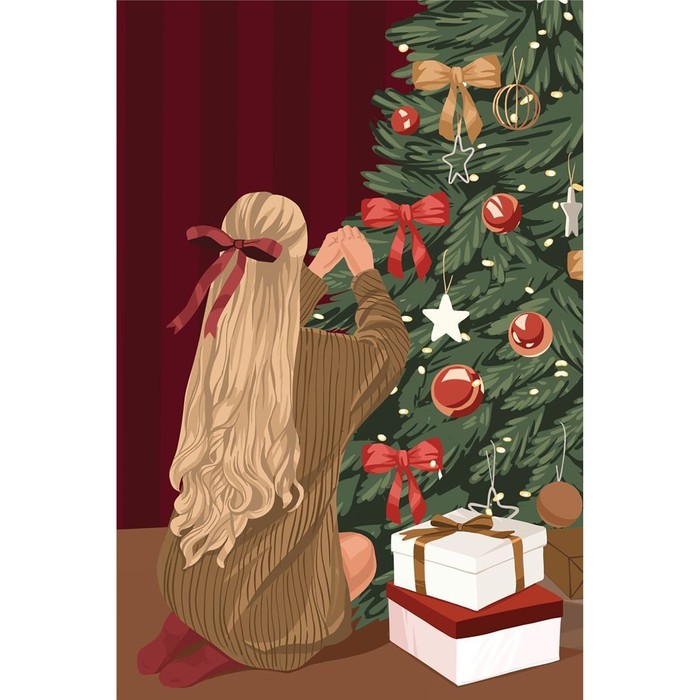 Картина по номерам на новый год на холсте с подрамником «Девушка у ёлки», 20 х 30 см понравится и детям и взрослым.