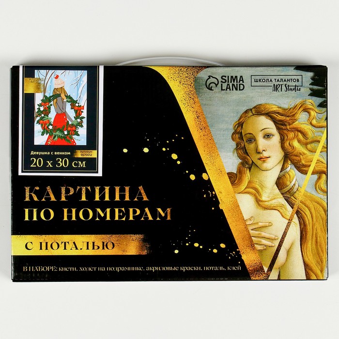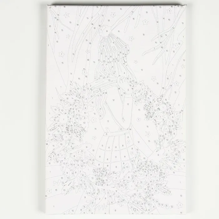 Картина по номерам на новый год на холсте с подрамником и поталью «Девушка с венком», 20×30 см — Характеристики