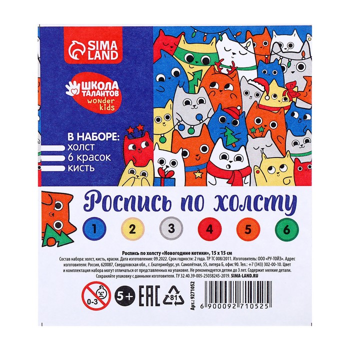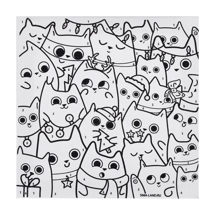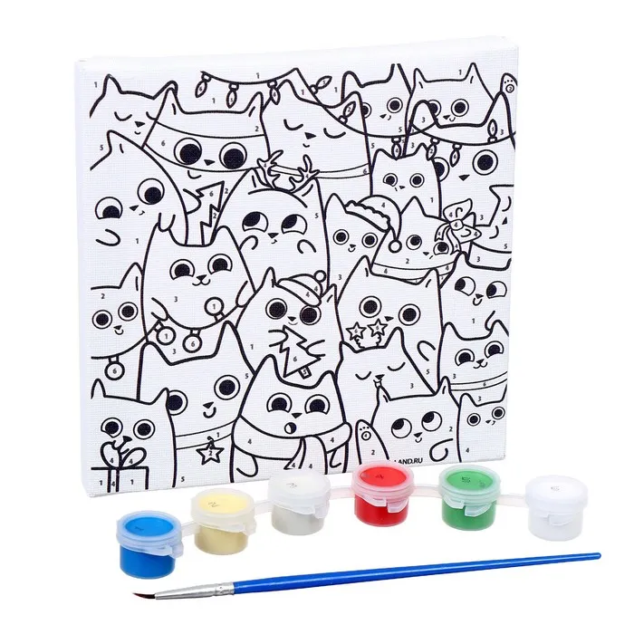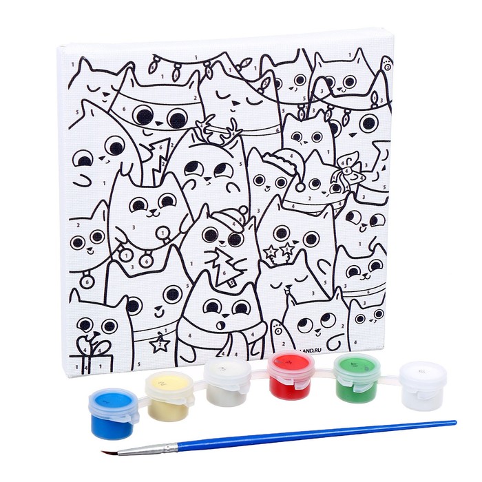 Картина по номерам на новый год на холсте с подрамником «Котики», 15×15 см — Характеристики