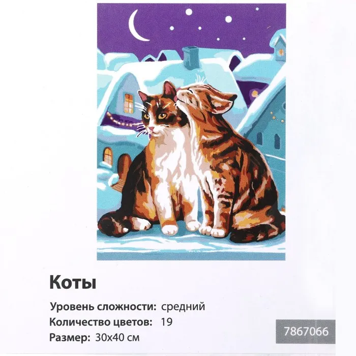 Картина по номерам на новый год на холсте с подрамником «Коты», 30 х 40 см — Характеристики
