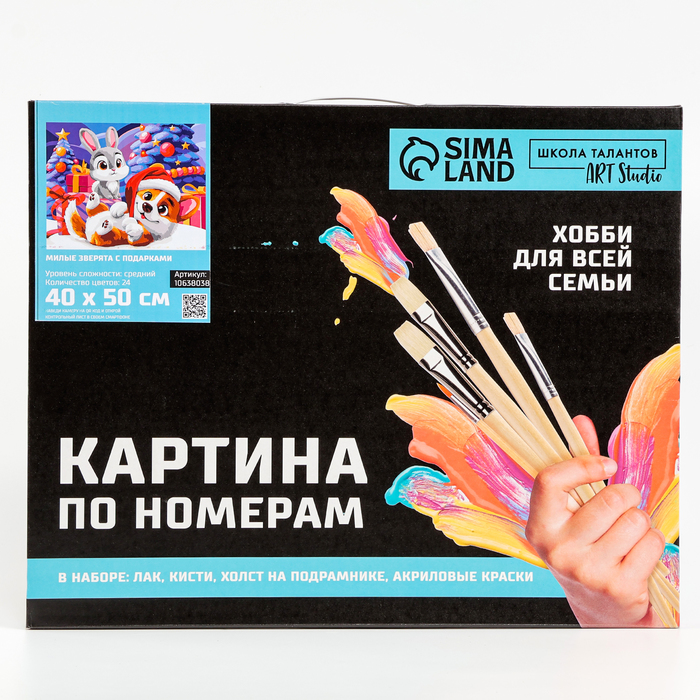 Картина по номерам на новый год на холсте с подрамником «Милые зверята с подарками», 40 х 50 см — Характеристики