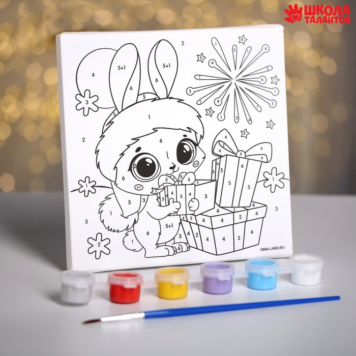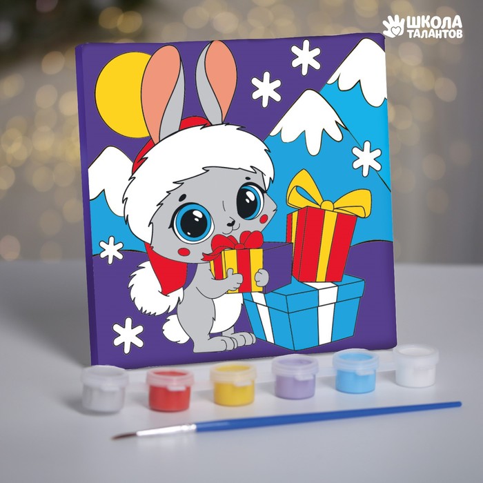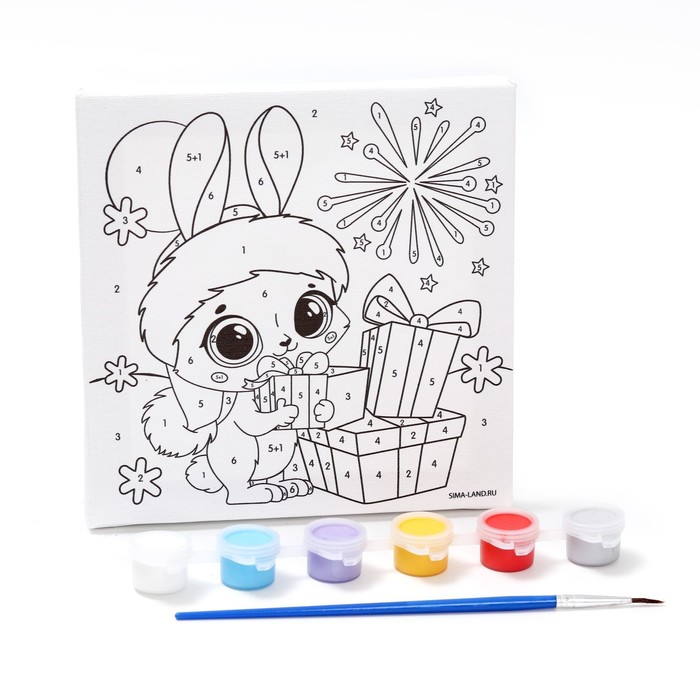 Картина по номерам «Новый год! Кролик с подарком», 15 х 15 см — Характеристики