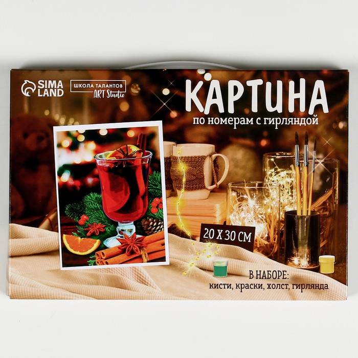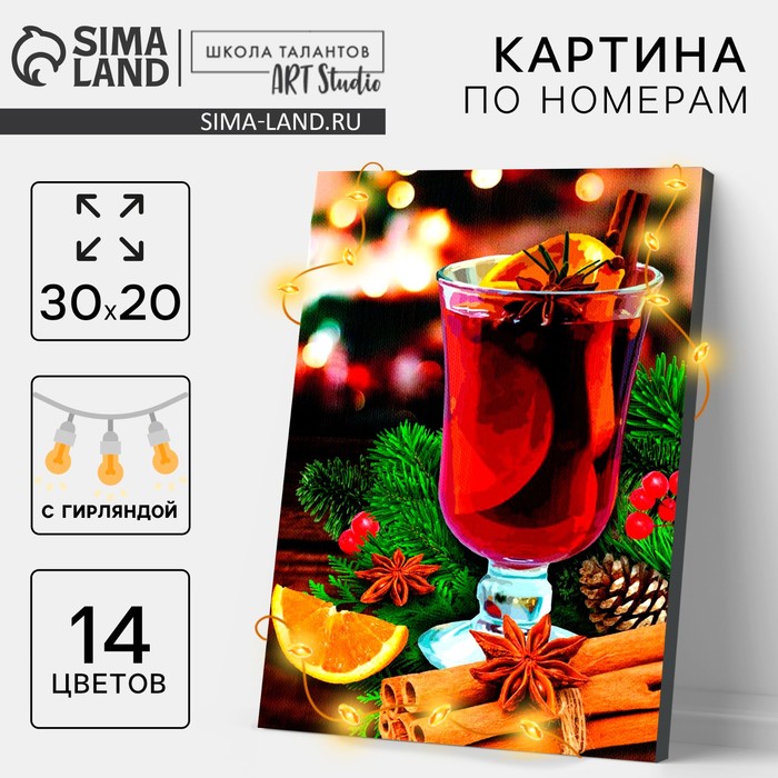 Картина по номерам с подрамником и гирляндой «Новый год! Глинтвейн», 20 х 30 см — Характеристики