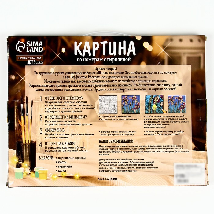 Картина по номерам с подрамником и гирляндой «Новый год! Настоящая сказка», 30 х 40 см — Характеристики