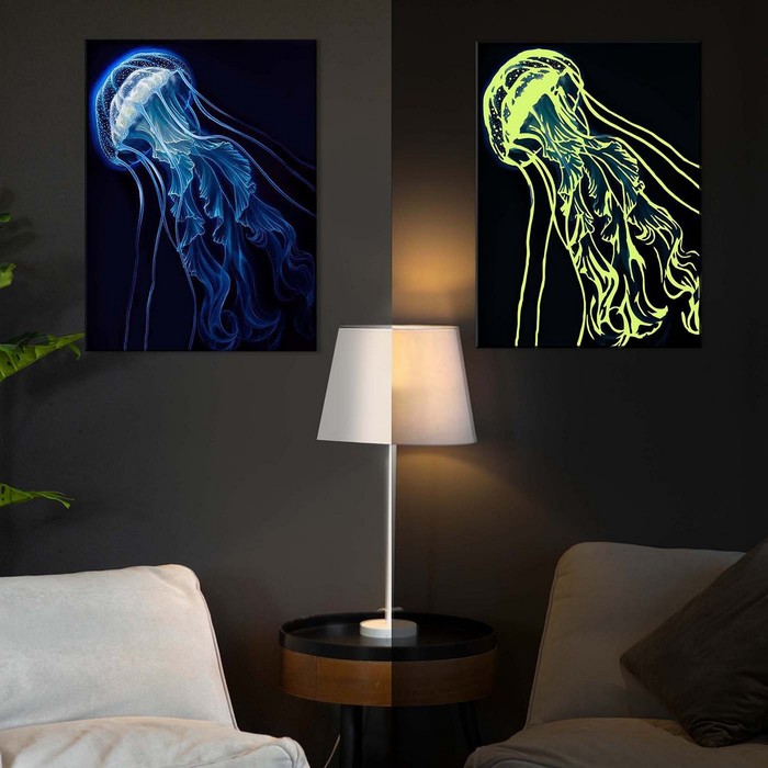 Картина по номерам со светящейся краской, 40 × 50 см «Красивая медуза» 14 цветов — Характеристики