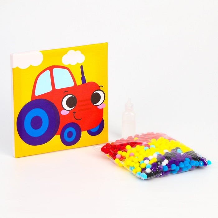Картина помпонами «Трактор», 20 х 20 см, аппликация помпошками — Характеристики