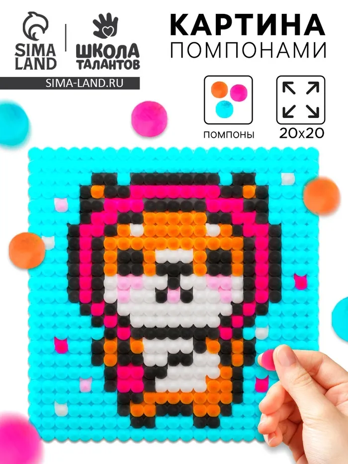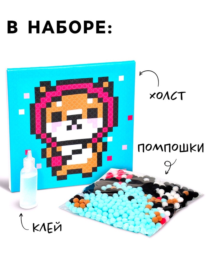 Картина помпошками на холсте «Корги», набор для творчества, своими руками, 3+ — Характеристики