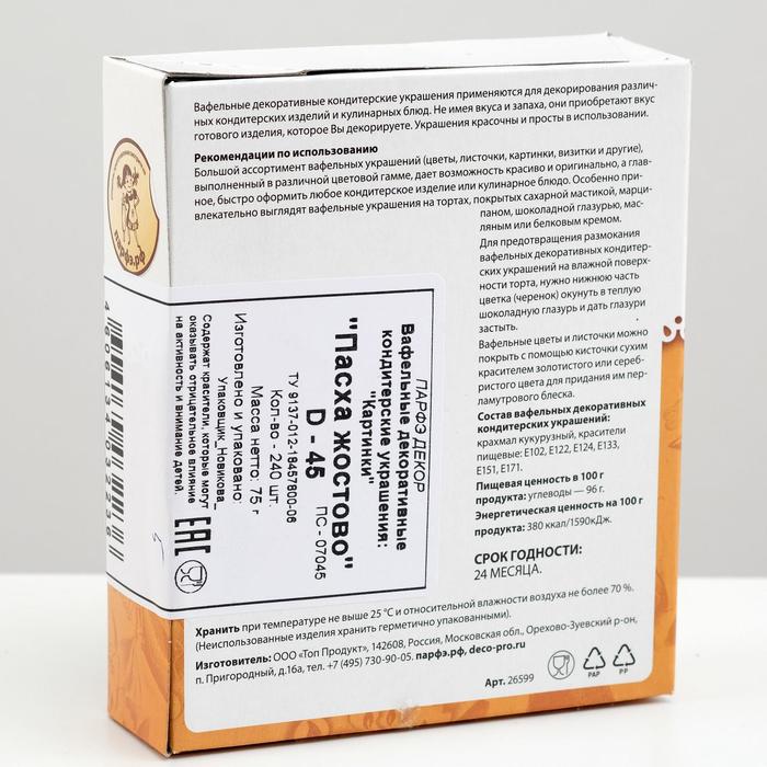 Вафельные картинки – тонкие пластины из съедобной бумаги на основе кукурузного крахмала, с рисунком, нанесённым пищевыми красителями. Вафельная бумага произведена в странах ЕС и сертифицирована для употребления в пищу.