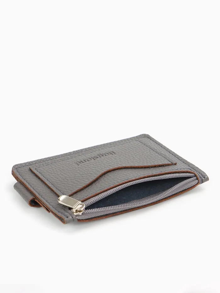 Серый кардхолдер с отделом для монет — идеальный аксессуар для тех, кто ценит стиль и функциональность в одном. Этот универсальный органайзер из прессованной кожи создан специально для надежного хранения ваших карт и монет. Его элегантный дизайн подчеркнёт вашу индивидуальность, дополняя любой современный гардероб.