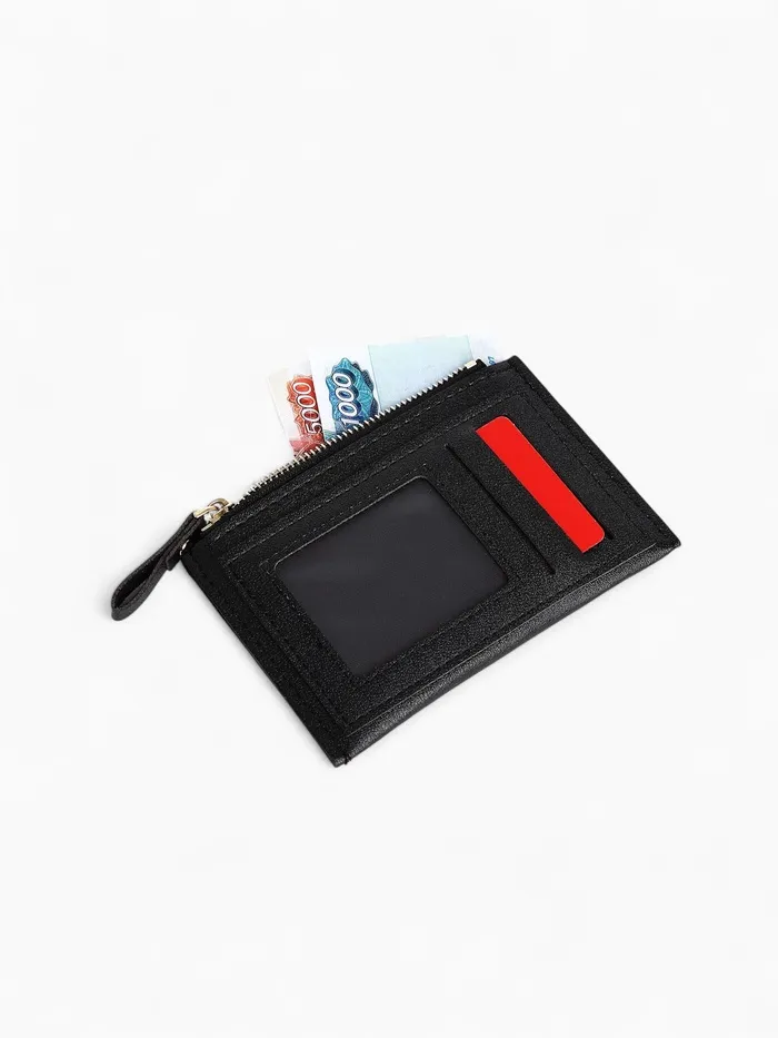 Картхолдер с монетницей на молнии, цвет чёрный — Характеристики