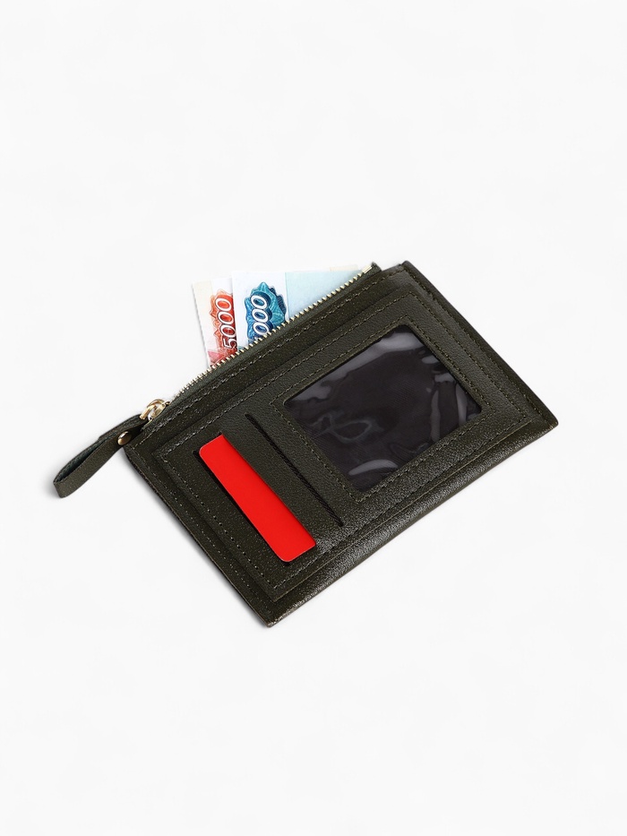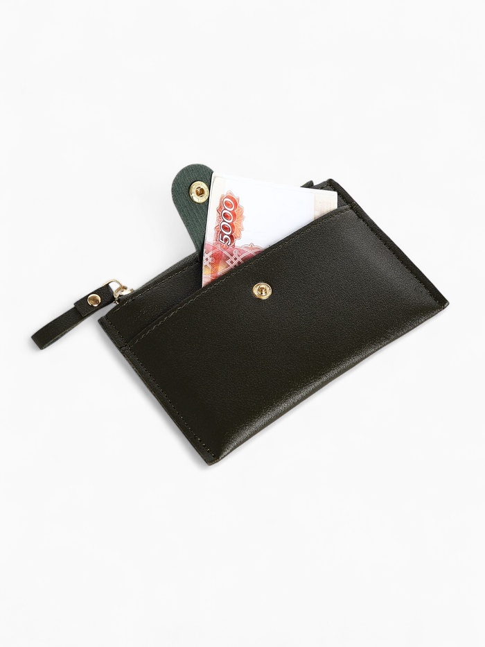Картхолдер с монетницей на молнии, цвет зелёный — Характеристики