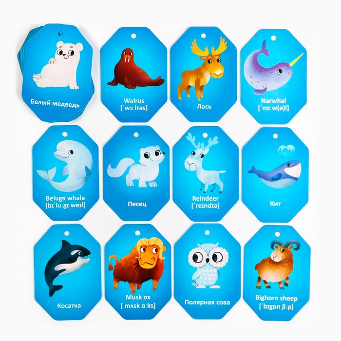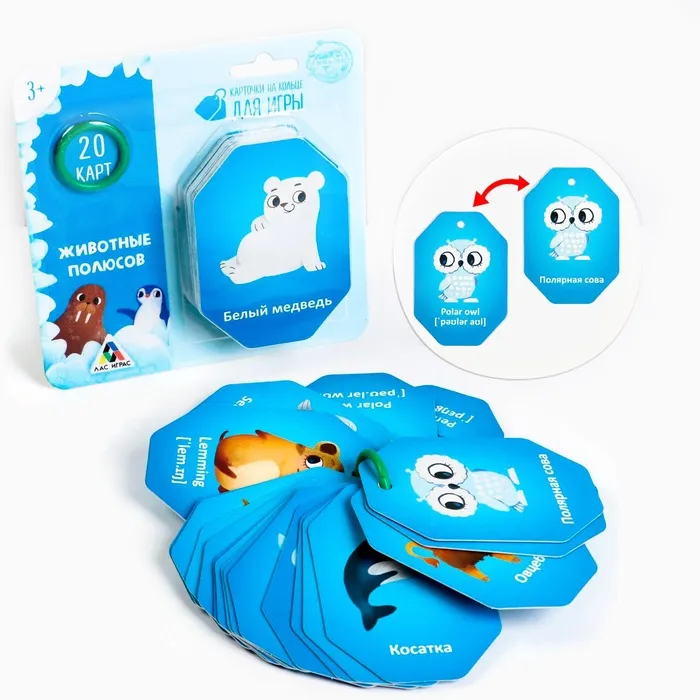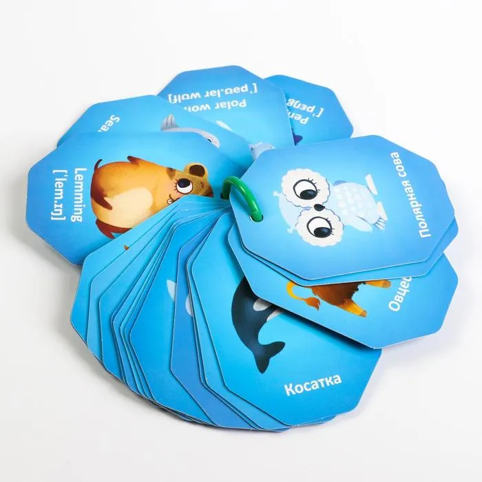 Карточки на кольце для изучения английского языка «Животные полюсов», 20 карт, кольцо, 3+ — Характеристики