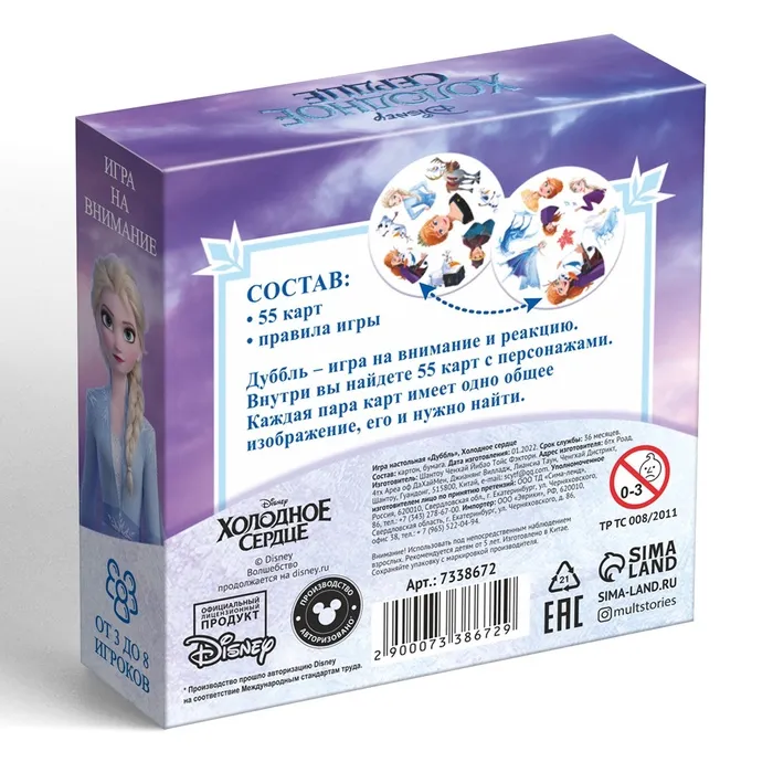 Внутри вас ждёт 55 карт с уникальным набором картинок. На каждой паре карт есть одно общее изображение. Его-то вам и нужно найти! Скорее собирайтесь всей семьёй и начинайте веселье!
