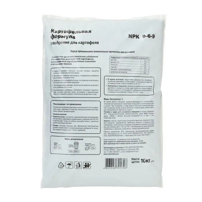 Картофельная формула удобрение для картофеля, 10 кг — Характеристики