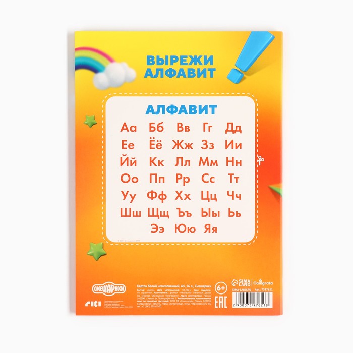 Картон белый, А4, 16 листов, немелованный, односторонний, в папке, 220, г/м², «Смешарики» — Характеристики