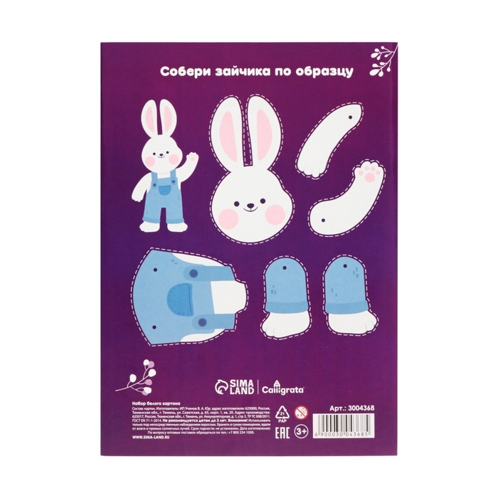 Картон белый А4, 16 листов "Зайка", односторонний, немелованный, 220 г/м2, в папке — Характеристики