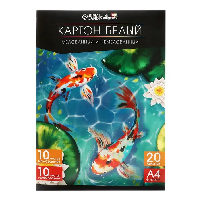 Картон белый А4, 20 листов: 10 листов мелованного плотность 200г/м2, 10 листов немелованного плотность 200 г/м2, в папке — Характеристики