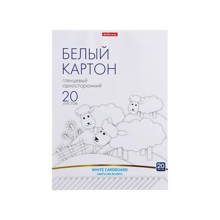 Белый картон немелованный односторонний формата А4 (203х280 мм). 20 листов. Плотность наполнения - 170 г/м2. Тип скрепления - клей. На внутренней стороне обложки приводятся инструкции по изготовлению поделок. Упакован в термоусадочную пленку по 10 штук.