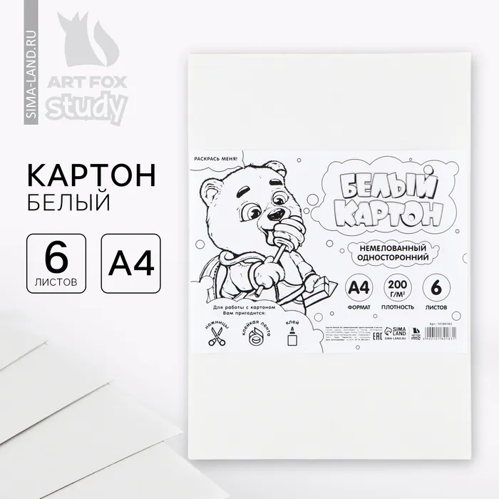 Белый картон из серии «Персонажи», торговой марки ArtFox STUDY, идеально подойдет для квиллинга, аппликации и изготовления поделок. Картон имеет приятную на ощупь поверхность, листы плотные, что позволяет использовать их для детского творчества.