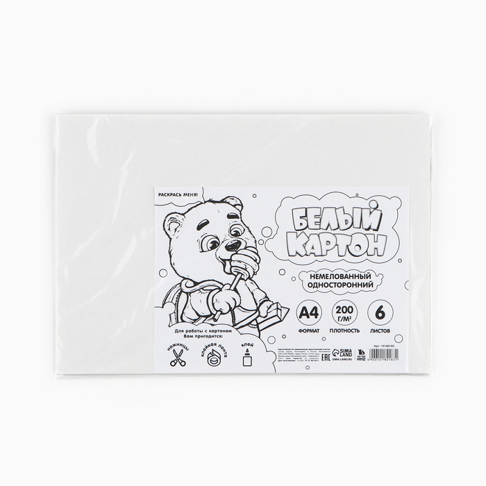 Картон белый А4, 6 листов немелованный односторонний 200 г/м² в пакете — Характеристики