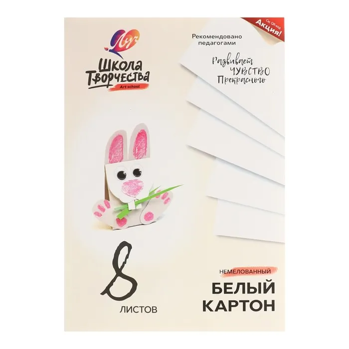 Картон белый А4, 8 листов "Луч", плотность 220 г/м2 — Характеристики