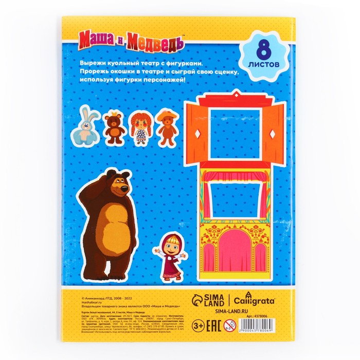 Картон белый, А4, 8 листов, мелованный, двусторонний, в папке, 230, г/м², «Маша и медведь» — Характеристики
